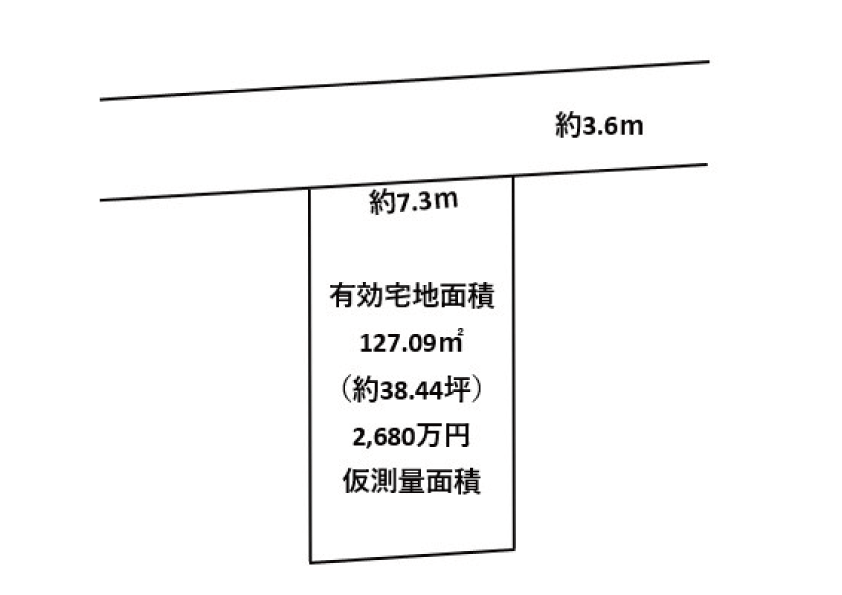 | 道路 | 道路1:私道・方角東・接道約7.3m・幅員約3.6m |