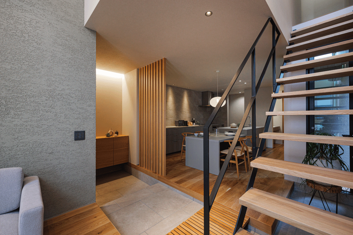 階段そのものが、空間のアクセントとして映え、圧迫感を感じさせず、上下階をゆるやかにつないでくれます。