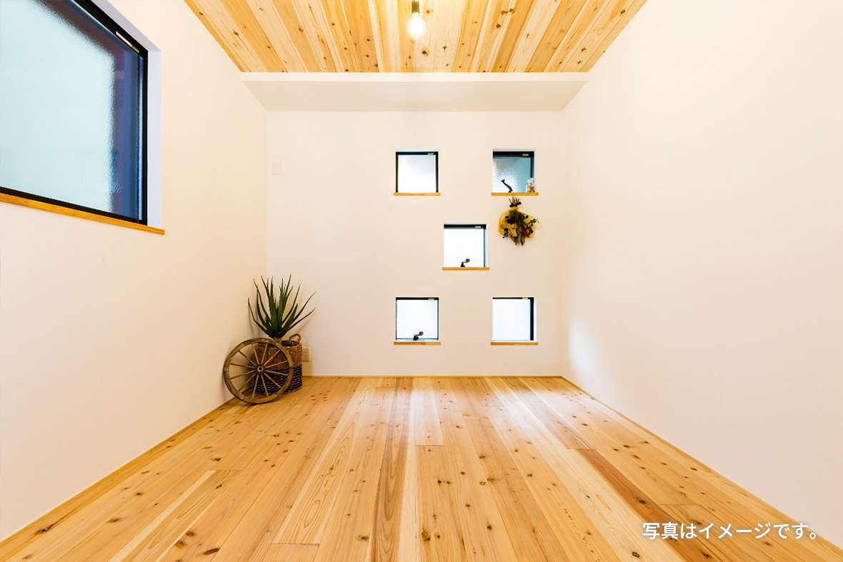 リビングだけでなく子供部屋や主寝室にも天然木をふんだんに使っています。木のいい香りを感じながら、夏は涼しく、冬でもひやっとしない空間で快適に過ごせます。