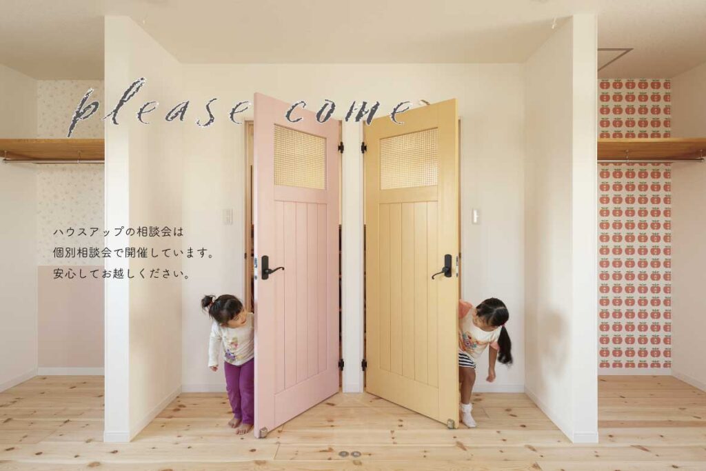 社宅の家賃が上がる通達がきたので、家賃が上がるなら、ローン払って家を建てようかと考えました。ハウスメーカーの見学会に行っている時に、ハウスアップの見学会の広告を見て間取りに興味を持ち、実際の家を見て見たいと思い行ってみると、ハウスアップの家に惚れました!!