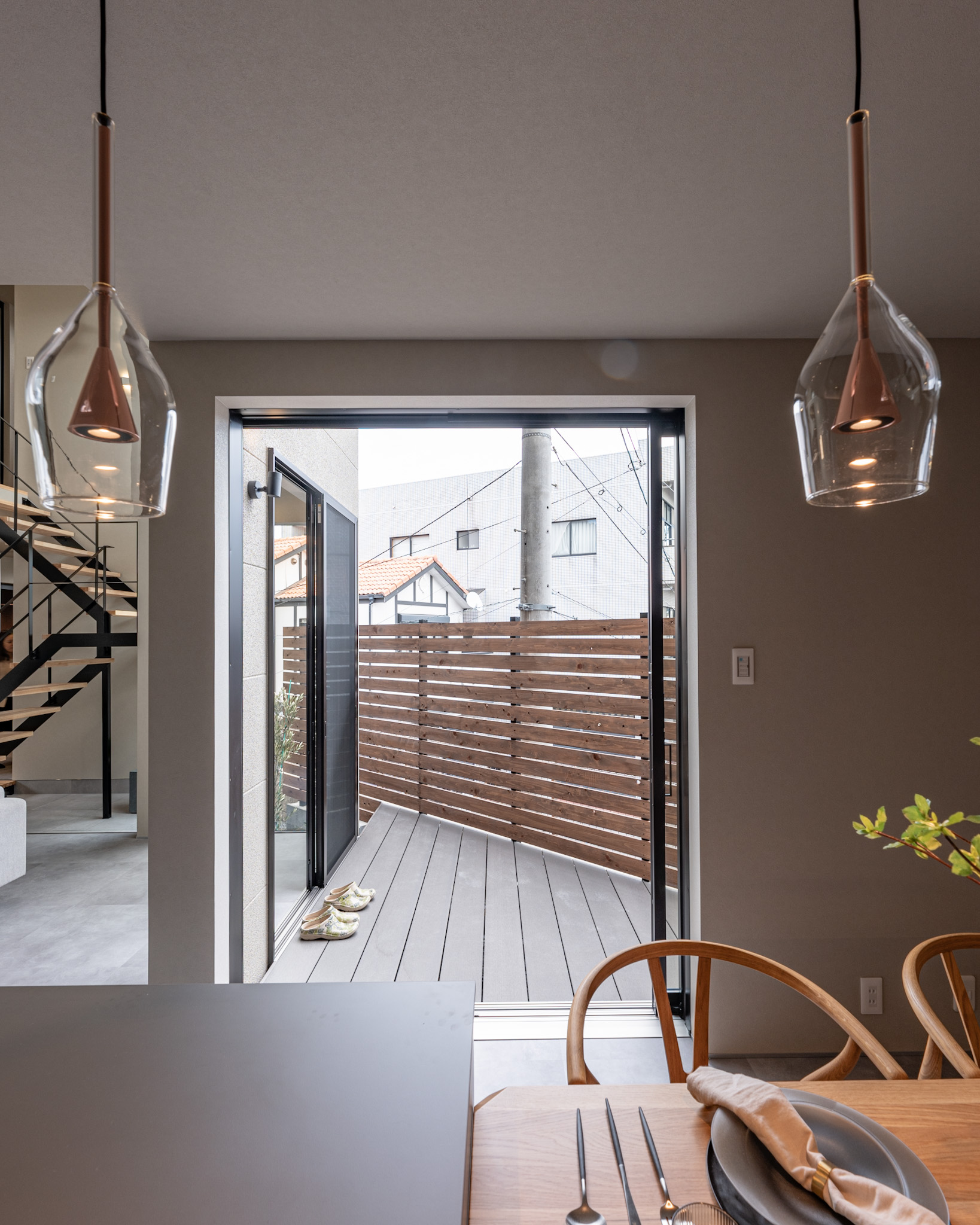 窓の向こうにウッドデッキ