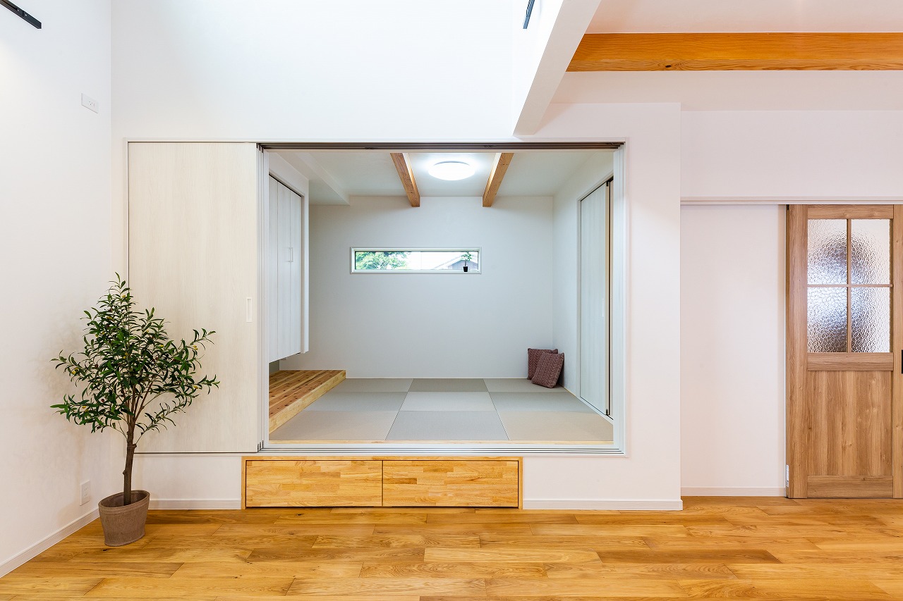 リビングに小上がりのある家