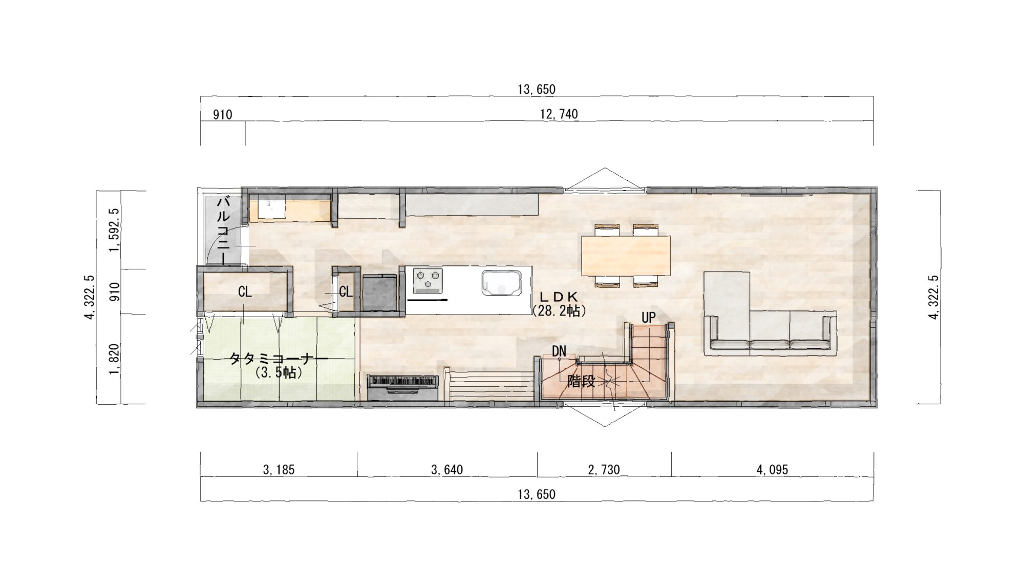 京都市の注文住宅・工務店ならハウスアップ > 間取り集 > 奥行のある土地を活かした3階建ての家