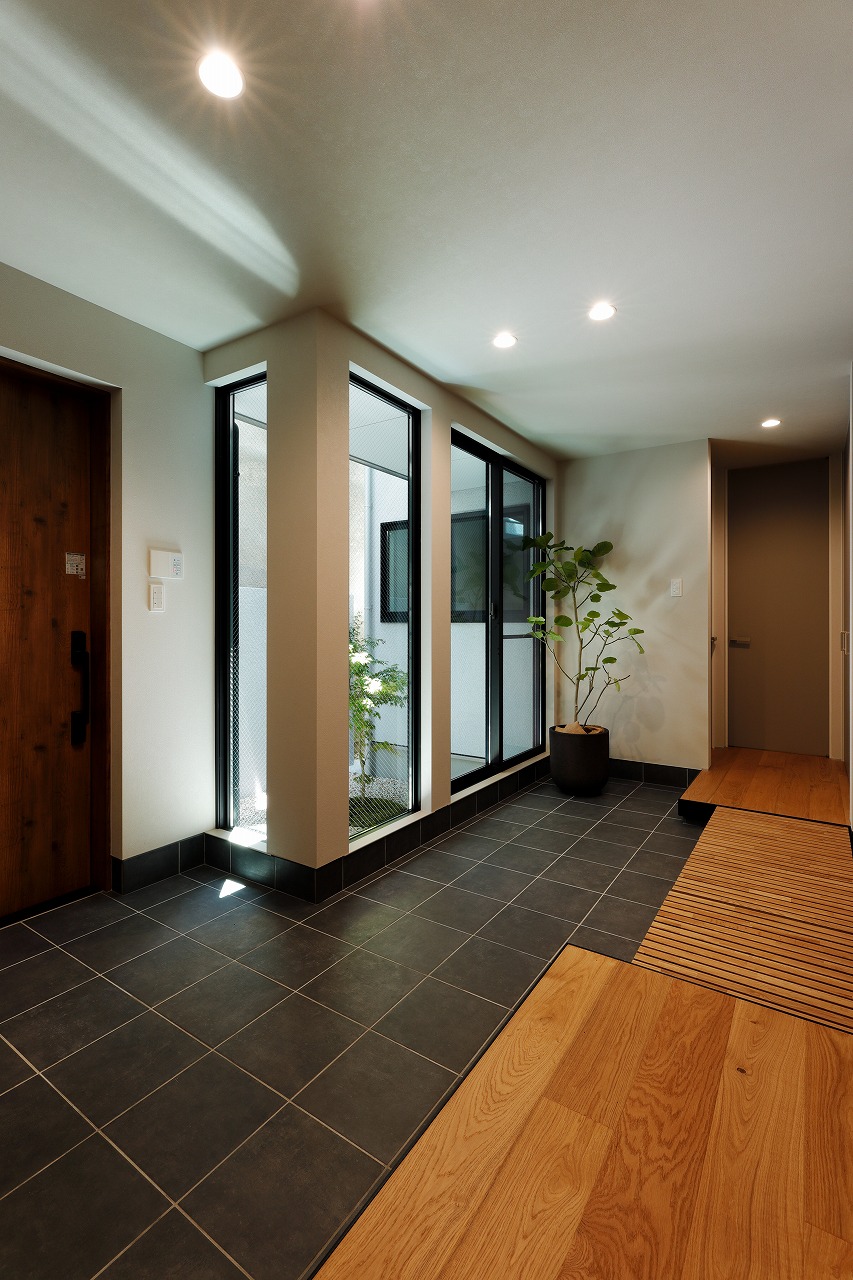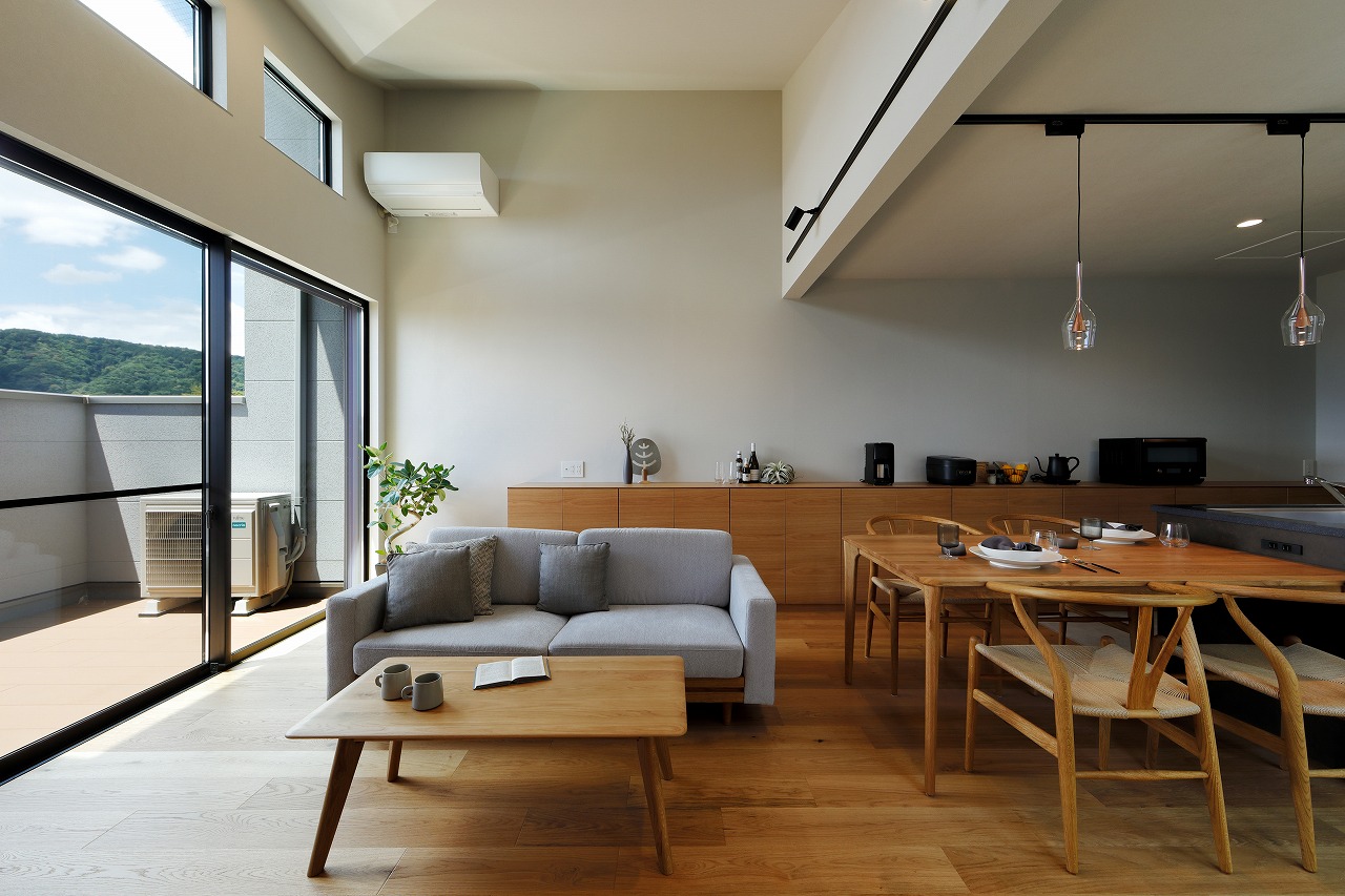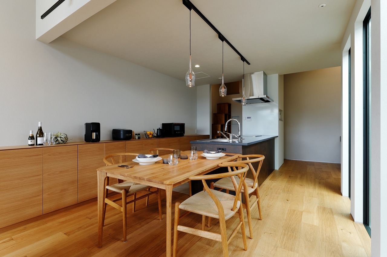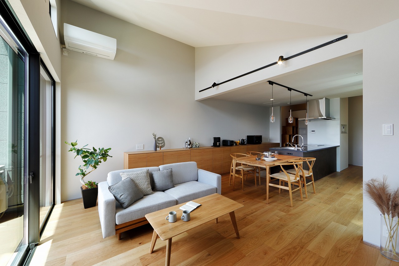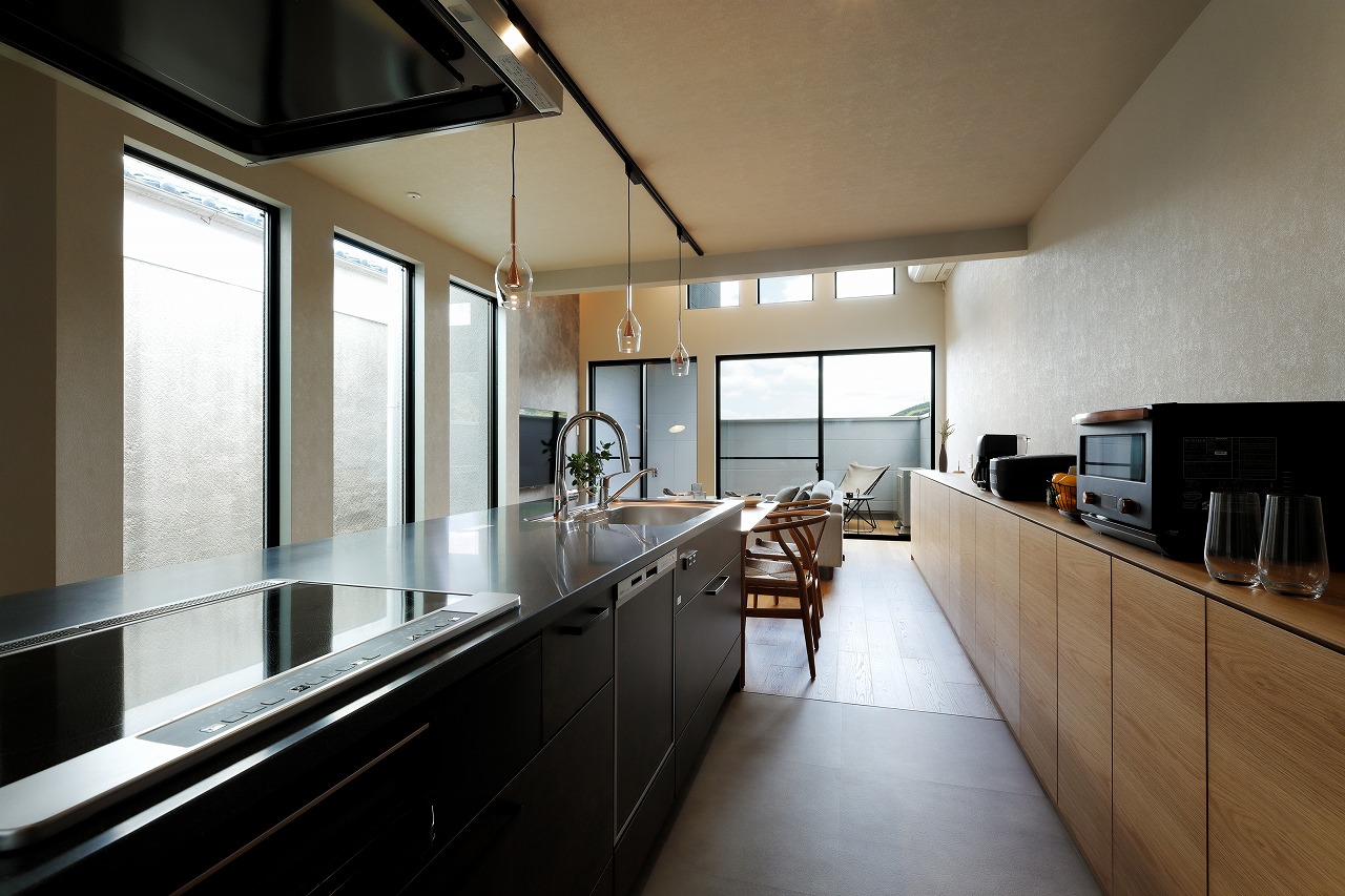 奥行きを活かしたペニンシュラ型キッチンと造作収納
