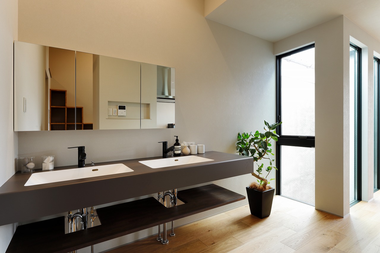 2ボウル造作洗面台で家族の朝支度もスムーズに