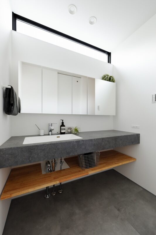 玄関ホールを抜けてすぐの造作洗面台で快適帰宅動線