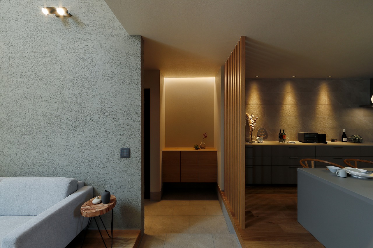 空間のつながりや素材、照明の工夫で、数字以上の心地よさを感じられます。 -